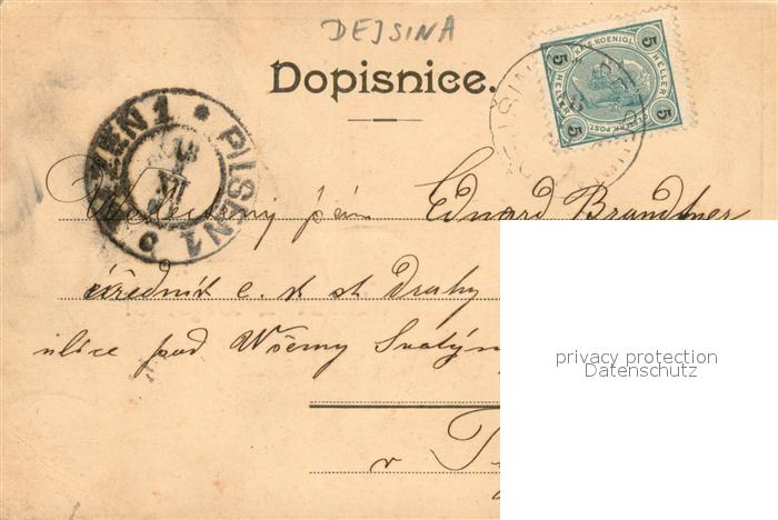 33708501 old postcard Dejsina Deuschina Czechia Panorama Kirche postalisch gelaufen Erhaltung siehe scans [WerneD78] KatCode: 11520