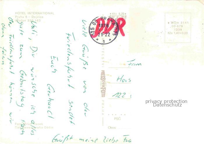 74022231 old postcard Dejvice Hotel International Restaurant Festtafel Minigolf postalisch gelaufen Erhaltung siehe scans [FriedD77] KatCode: 11520