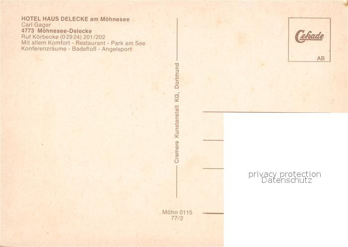 72954594 Delecke Hotel Haus Delecke am Moehnesee postalisch nicht gelaufen Erhaltung siehe scans [FriedD77] KatCode: 11110005974032