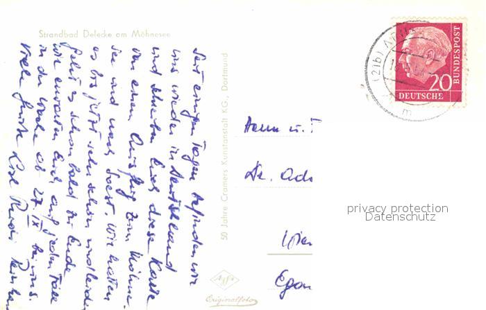 72841990 alte Postkarte Delecke Strandbad am Moehnesee Fliegeraufnahme postalisch gelaufen Erhaltung siehe scans [FriedD77] KatCode: 11110005974032