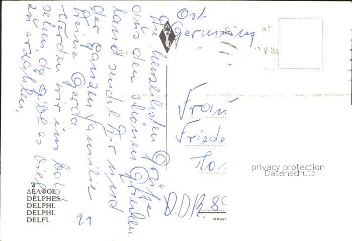 old postcard Delfi Delphi Ruine postalisch gelaufen