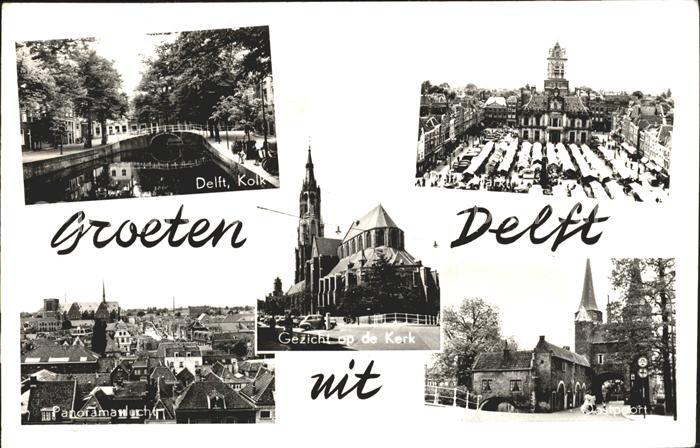 old postcard Delft Kerk Kolk postalisch gelaufen Erhaltung siehe scans