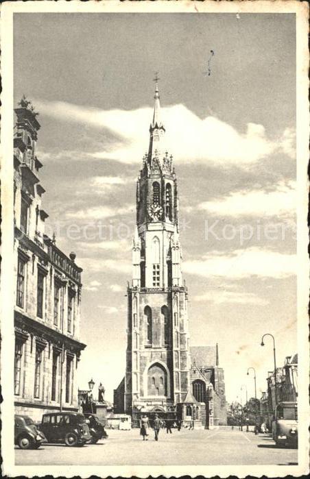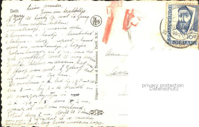old postcard Delft Markt Kerk postalisch gelaufen Erhaltung siehe scans