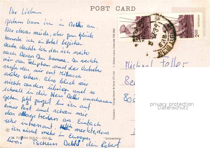 old postcard Delhi Delhi Purana Quila Festung postalisch gelaufen Erhaltung siehe scans [FriedD77]