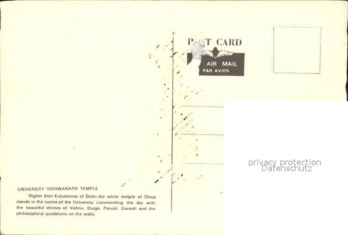 Delhi Univeersity Vishwanath Temple postalisch nicht gelaufen Erhaltung siehe scans