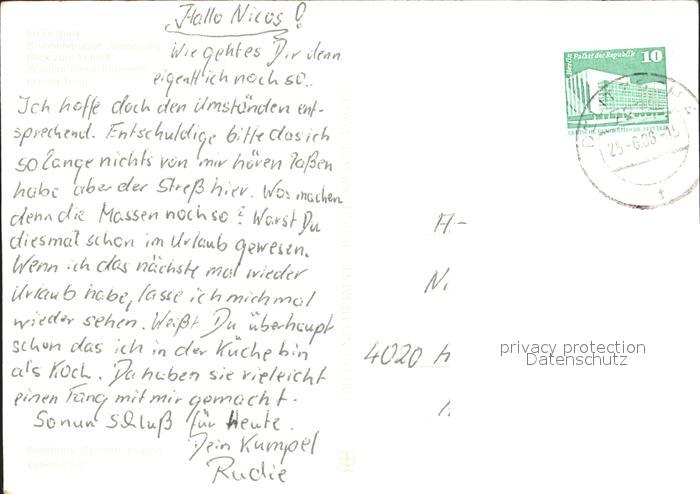 72306619 alte Postkarte Delitzsch Brunnengruppe Genesung Schloss Wilhelm Pieck Ehrenmal Breiter Turm postalisch gelaufen Erhaltung siehe scans KatCode: 11110014374060