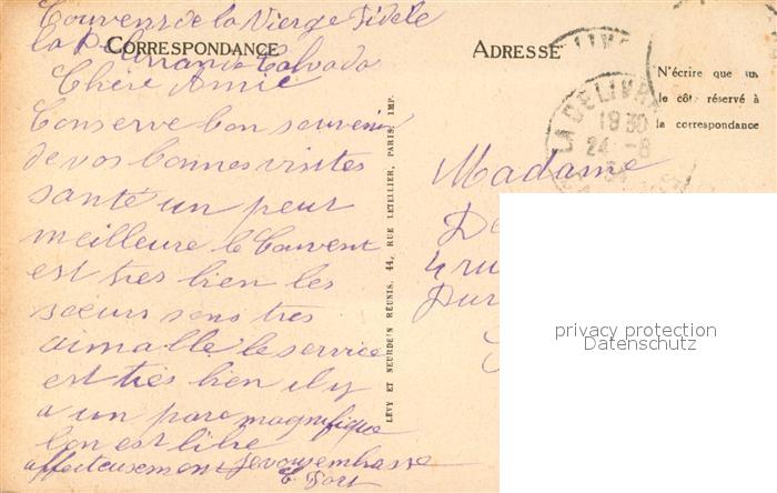 13515491 carte postale Delivrande La Le Convent de la Vierge Fidele postalisch gelaufen Erhaltung siehe scans [KathaD81] KatCode: 11170014214228