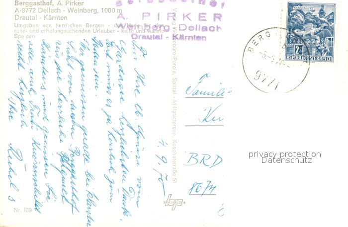 73033381 alte Postkarte Dellach Drautal Berggasthof Weinberg postalisch gelaufen Erhaltung siehe scans [PaolaD17] KatCode: 11390212020604