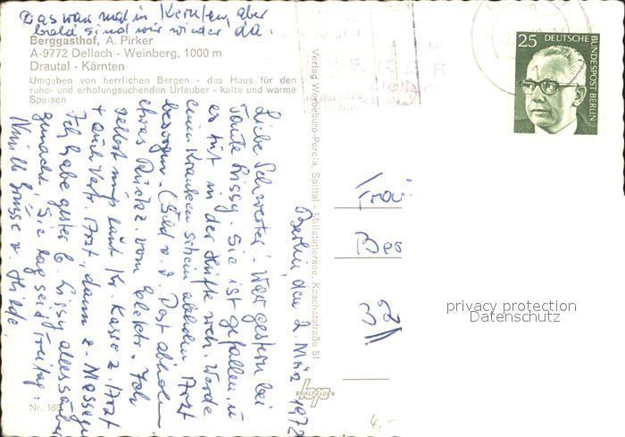 71901808 alte Postkarte Dellach Drautal Berggasthof Weinberg A. Pirker postalisch gelaufen Erhaltung siehe scans KatCode: 11390212020604