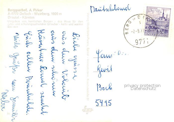 73517574 alte Postkarte Dellach Drautal Berggasthof Weinberg postalisch gelaufen Erhaltung siehe scans [KathaD81] KatCode: 11390212020604