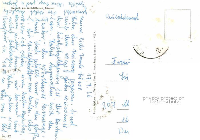 72760278 alte Postkarte Dellach Millstaettersee Panorama mit Alpenblick postalisch gelaufen Erhaltung siehe scans [FriedD77] KatCode: 11390212020620