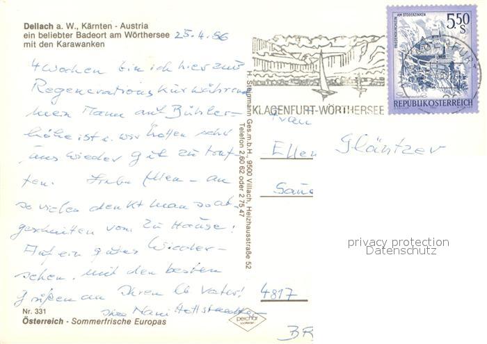 73668387 alte Postkarte Dellach Woerthersee Badeort mit den Karawanken Fliegeraufnahme postalisch gelaufen Erhaltung siehe scans [FriedD77] KatCode: 11390211020419