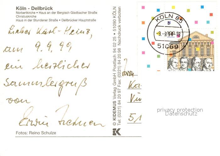 73673008 alte Postkarte Dellbrueck Norbertkirche Wohnhaus Christuskirche Fachwerkhaus Dellbruecker Hauptstrasse postalisch gelaufen Erhaltung siehe scans [WerneD78] KatCode: 11110005315000