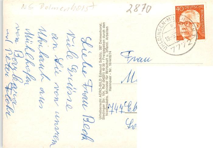73886405 alte Postkarte Delmenhorst Fliegeraufnahme postalisch gelaufen Erhaltung siehe scans [FriedD77] KatCode: 11110003401000