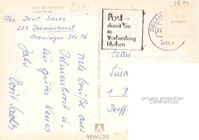 72900994 alte Postkarte Delmenhorst Lange Strasse postalisch gelaufen Erhaltung siehe scans [WerneD78] KatCode: 11110003401000
