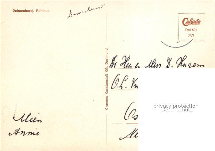 72987948 alte Postkarte Delmenhorst Rathaus postalisch gelaufen Erhaltung siehe scans [FriedD77] KatCode: 11110003401000