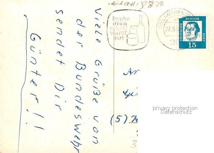 73839699 alte Postkarte Delmenhorst Rathaus Lange Strasse Graftanlagen An den Graften postalisch gelaufen Erhaltung siehe scans [FriedD77] KatCode: 11110003401000