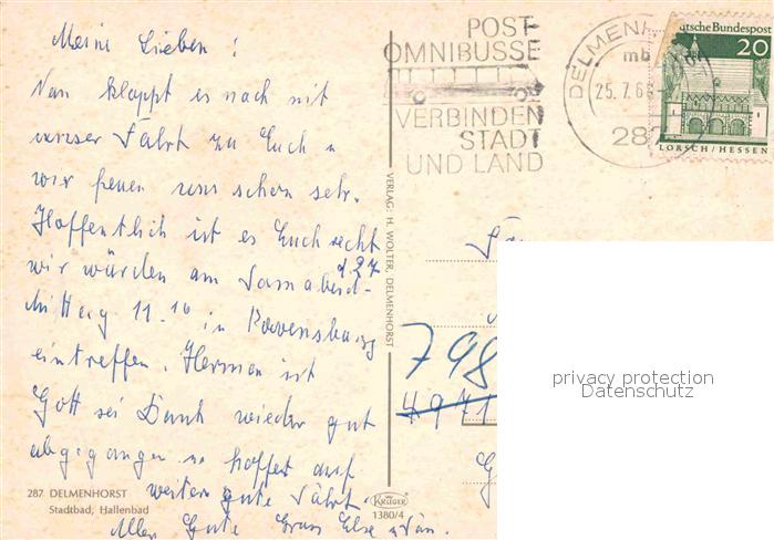 72796916 alte Postkarte Delmenhorst Stadtbad Hallenbad postalisch gelaufen Erhaltung siehe scans [KathaD81] KatCode: 11110003401000