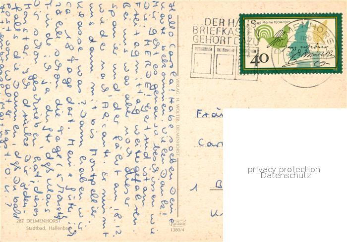 73324182 alte Postkarte Delmenhorst Stadtbad Hallenbad postalisch gelaufen Erhaltung siehe scans [FriedD77] KatCode: 11110003401000