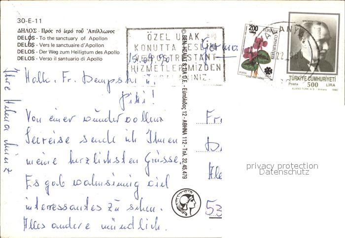 old postcard Delos Weg zum Heiligtum des Apollo postalisch gelaufen Erhaltung siehe scans