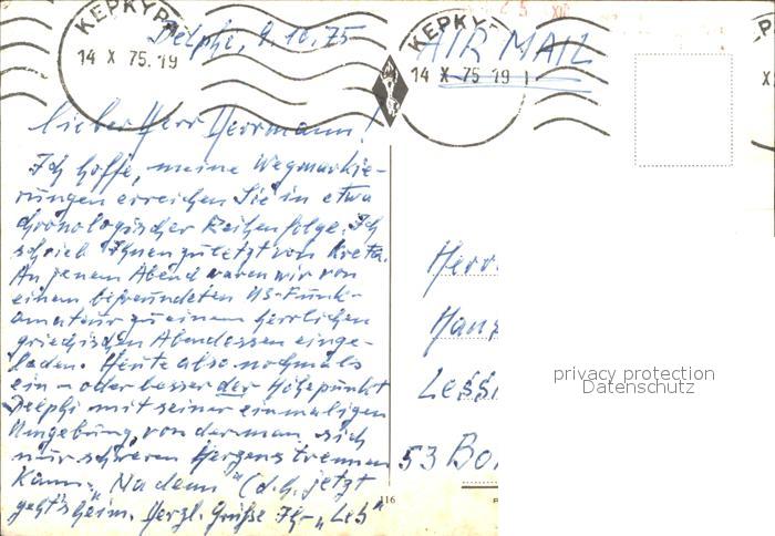 old postcard Delphi Delfi Ruine Skulpturen postalisch gelaufen Erhaltung siehe scans