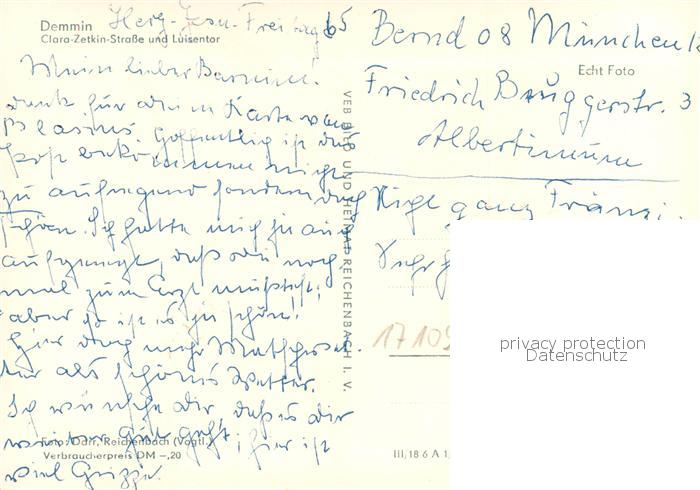 73852683 Demmin Mecklenburg Vorpommern Clara Zetkin Strasse und Luisentor postalisch nicht gelaufen Erhaltung siehe scans [FriedD77] KatCode: 11110013052018