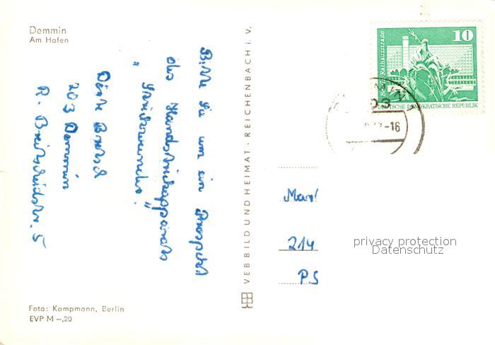73093101 alte Postkarte Demmin Mecklenburg Vorpommern Hafen postalisch gelaufen Erhaltung siehe scans [LiesaD40] KatCode: 11110013052018