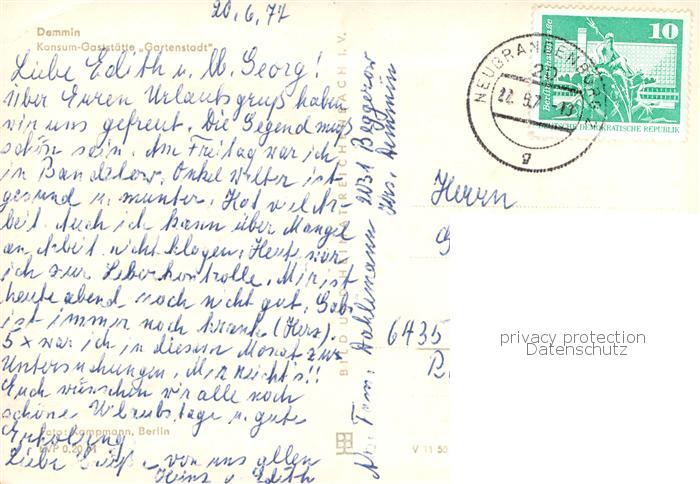 73832181 alte Postkarte Demmin Mecklenburg Vorpommern Konsum Gaststaette Gartenstadt postalisch gelaufen Erhaltung siehe scans [WerneD78] KatCode: 11110013052018