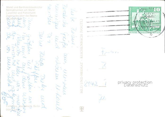 72414002 alte Postkarte Demmin Mecklenburg Vorpommern Markt Bartholomaeuskirche Springbrunnen Luisentor Pulverturm Zugbruecke Peene postalisch gelaufen Erhaltung siehe scans KatCode: 11110013052018