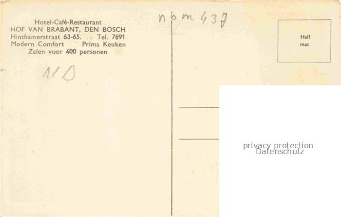 74017268 Den Bosch S-Hertogenbosch NL Hotel Cafe Hof van Brabant Fetzaal postalisch nicht gelaufen Erhaltung siehe scans [WerneD78] KatCode: 11370