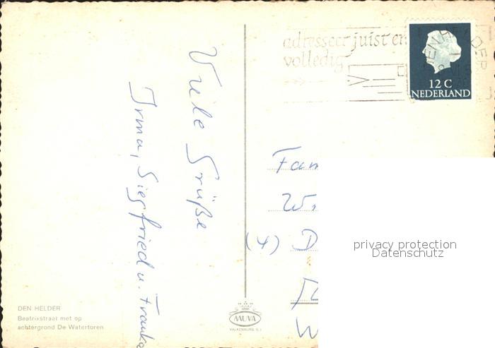 old postcard Den Helder Watertoren Beatrixstraat postalisch gelaufen Erhaltung siehe scans