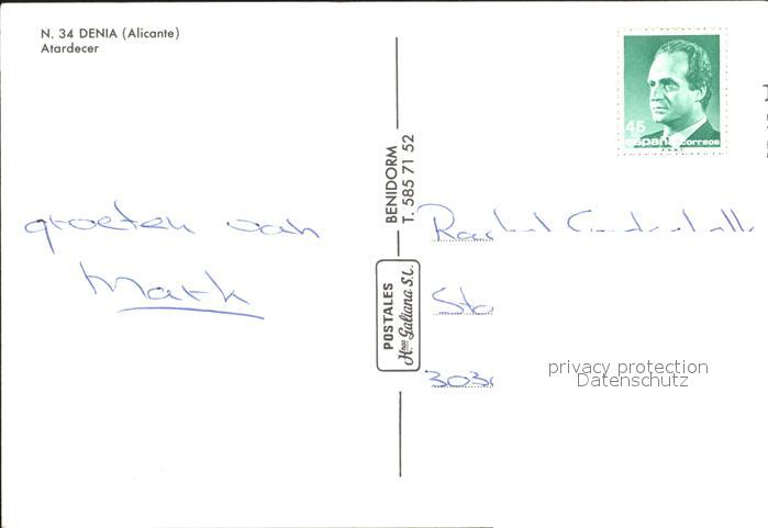 old postcard Denia Atardecer postalisch gelaufen Erhaltung siehe scans