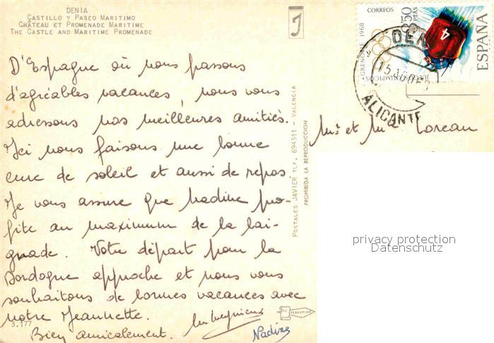 old postcard Denia Castillo y Paseo Maritimo postalisch gelaufen Erhaltung siehe scans [NatalD47]
