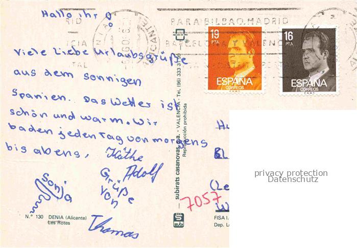 74137443 old postcard Denia Costa Blanca ES Strand postalisch gelaufen Erhaltung siehe scans [WerneD78] KatCode: 11510