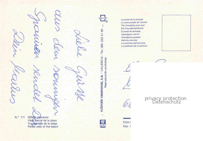 74096696 Denia Costa Blanca ES Vista parcial la playa Strand postalisch nicht gelaufen Erhaltung siehe scans [IrynaD87] KatCode: 11510