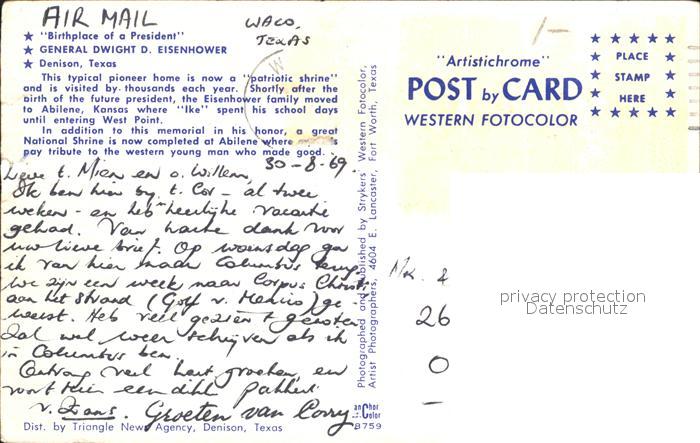 72285194 old postcard Denison Texas Birthplace of President Eisenhower postalisch gelaufen Erhaltung siehe scans KatCode: 14140460000000