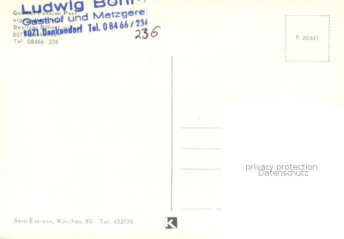 73569580 Denkendorf Oberbayern Gasthof Pension Post Metzgerei postalisch nicht gelaufen Erhaltung siehe scans [FriedD77] KatCode: 11110009176120