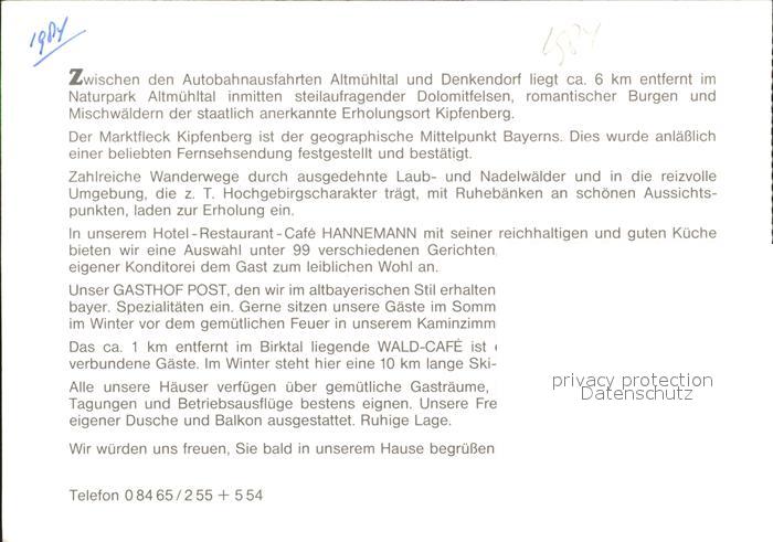 72271640 Denkendorf Oberbayern Hotel Restaurant Cafe Hannemann postalisch nicht gelaufen Werbekarte (keine Postkarte) Erhaltung siehe scans KatCode: 11110009176120
