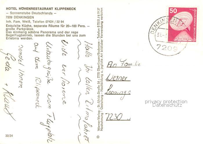 73744783 alte Postkarte Denkingen Wuerttemberg Hotel Hoehenrestaurant Klippeneck Fliegeraufnahme postalisch gelaufen Erhaltung siehe scans [FriedD77] KatCode: 11110008327010