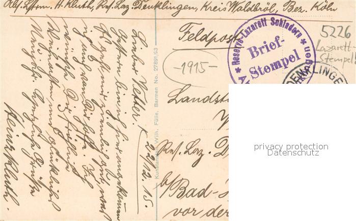 33703450 alte Postkarte Denklingen Oberbergischer Kreis Genesungsheim Denklingen der AOK Barmen postalisch gelaufen Feldpost auf Karte (Motiv) Erhaltung siehe scans [WerneD78] KatCode: 11110005374040