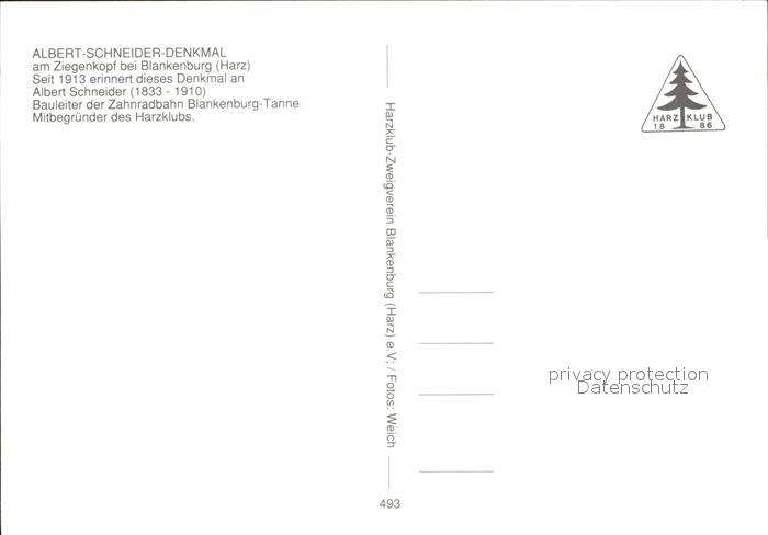 Denkmal Albert Schneider Ziegenkopf Harz postalisch nicht gelaufen Erhaltung siehe scans
