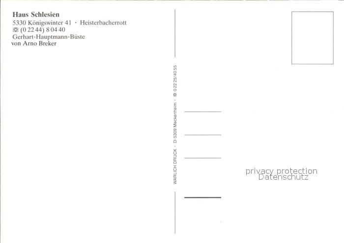 Denkmal Gerhart-Hauptmann-Bueste Haus Schlesien Koenigswinter postalisch nicht gelaufen Erhaltung siehe scans