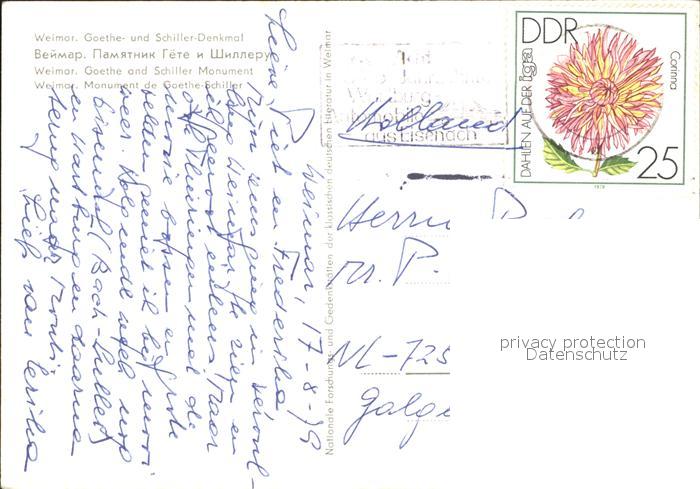 alte Postkarte Denkmal Goethe-Schiller Weimar postalisch gelaufen Erhaltung siehe scans