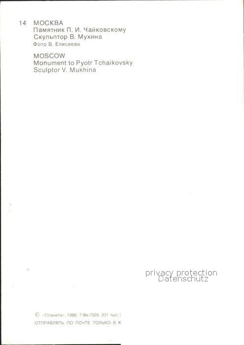 Denkmal Pyotr Tchaikovsky Moskau postalisch nicht gelaufen Erhaltung siehe scans