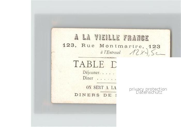 Denkmal Statue General Drouot Nancy Table d Hote postalisch nicht gelaufen Werbekarte (keine Postkarte) Erhaltung siehe scans