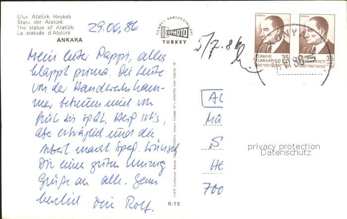 alte Postkarte Denkmal Ulus Atatuerk Heykeli Ankara postalisch gelaufen Erhaltung siehe scans