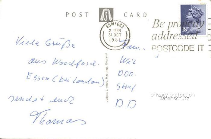 alte Postkarte Denkmal Winston Churchhill Woodford postalisch gelaufen Erhaltung siehe scans