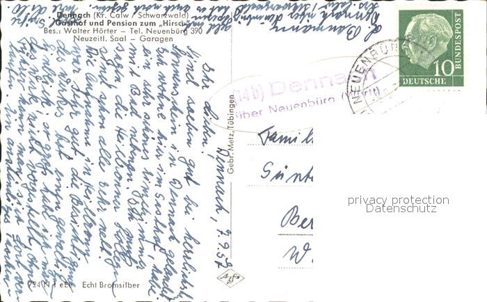 31728235 alte Postkarte Dennach Neuenbuerg Gasthaus zum Hirsch Waldweg Blick ins Enztal postalisch gelaufen Erhaltung siehe scans KatCode: 11110008236043