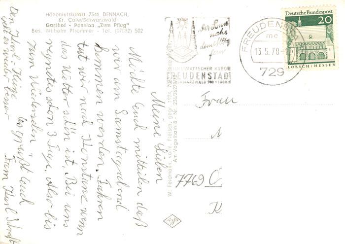 73876530 alte Postkarte Dennach Neuenbuerg Gasthof Pension Zum Pflug postalisch gelaufen Erhaltung siehe scans [FriedD77] KatCode: 11110008236043