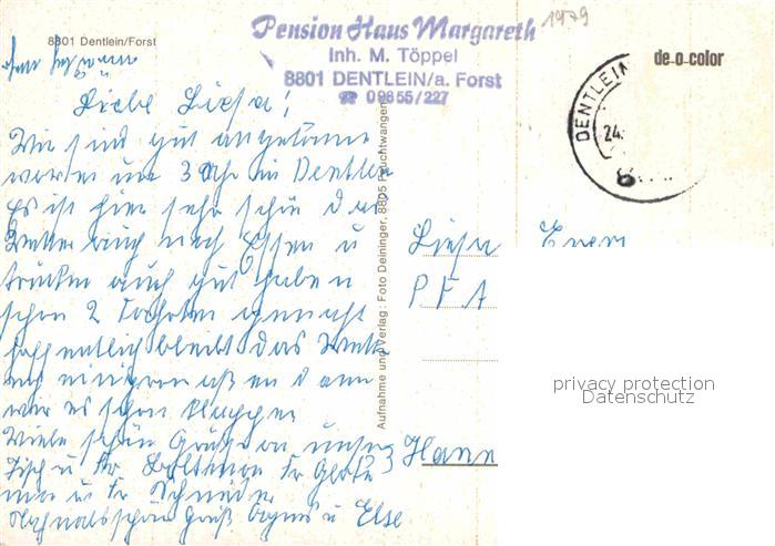 72889191 alte Postkarte Dentlein Forst postalisch gelaufen Erhaltung siehe scans [LiesaD40] KatCode: 11110009571132